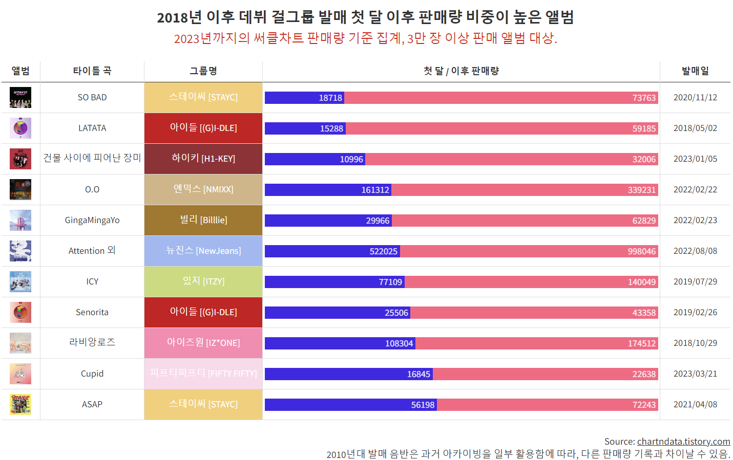 특히 스테이씨와 아이들의 데뷔 앨범은